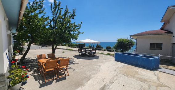 Малката къща на брега на морето се състои от два апартамента - двустаен и тристаен и красив двор с беседка и маса, както и две паркоместа. Ползва се басейн зоната на хотела.